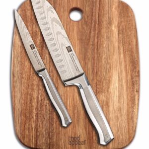 סכין סנטוקו 18 ס"מ + סכין 13 ס"מ + קרש חיתוך עץ שיטה 1.5*29*38 ס"מ ONO מבית Food appeal * *
