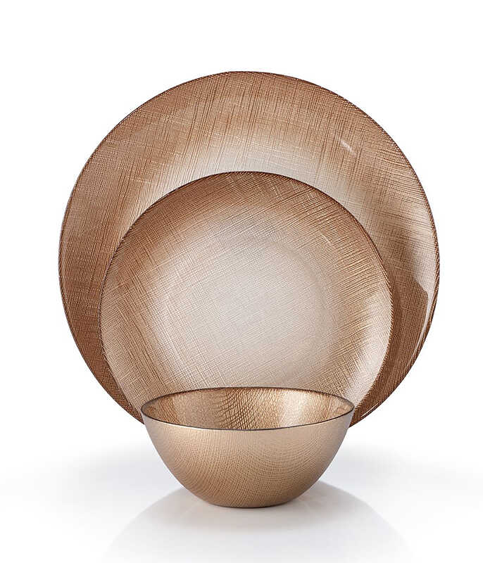 סט אוכל COPPER GRACE בגימור נחושת מבריק במיוחד, ליצירת שולחן אירוח אלגנטי, חגיגי ויוקרתי.