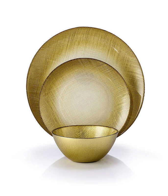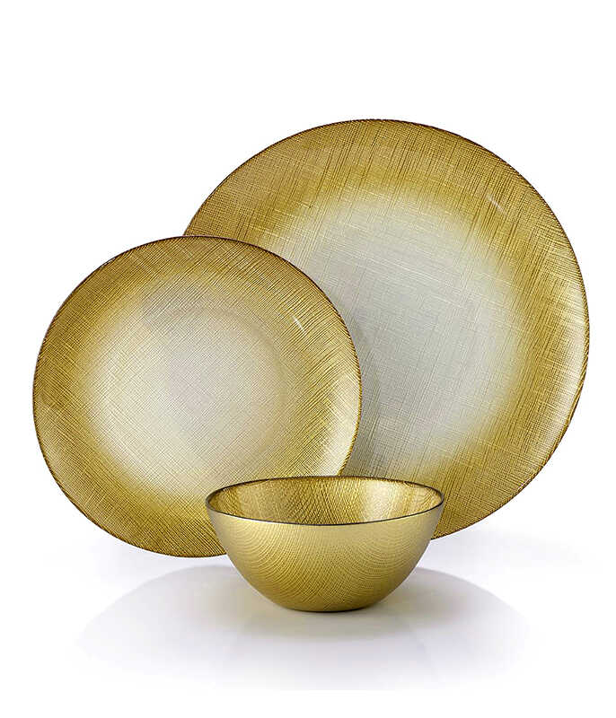 סט אוכל GOLD GRACE בגימור זהב מבריק במיוחד, ליצירת שולחן אירוח אלגנטי, חגיגי ויוקרתי.