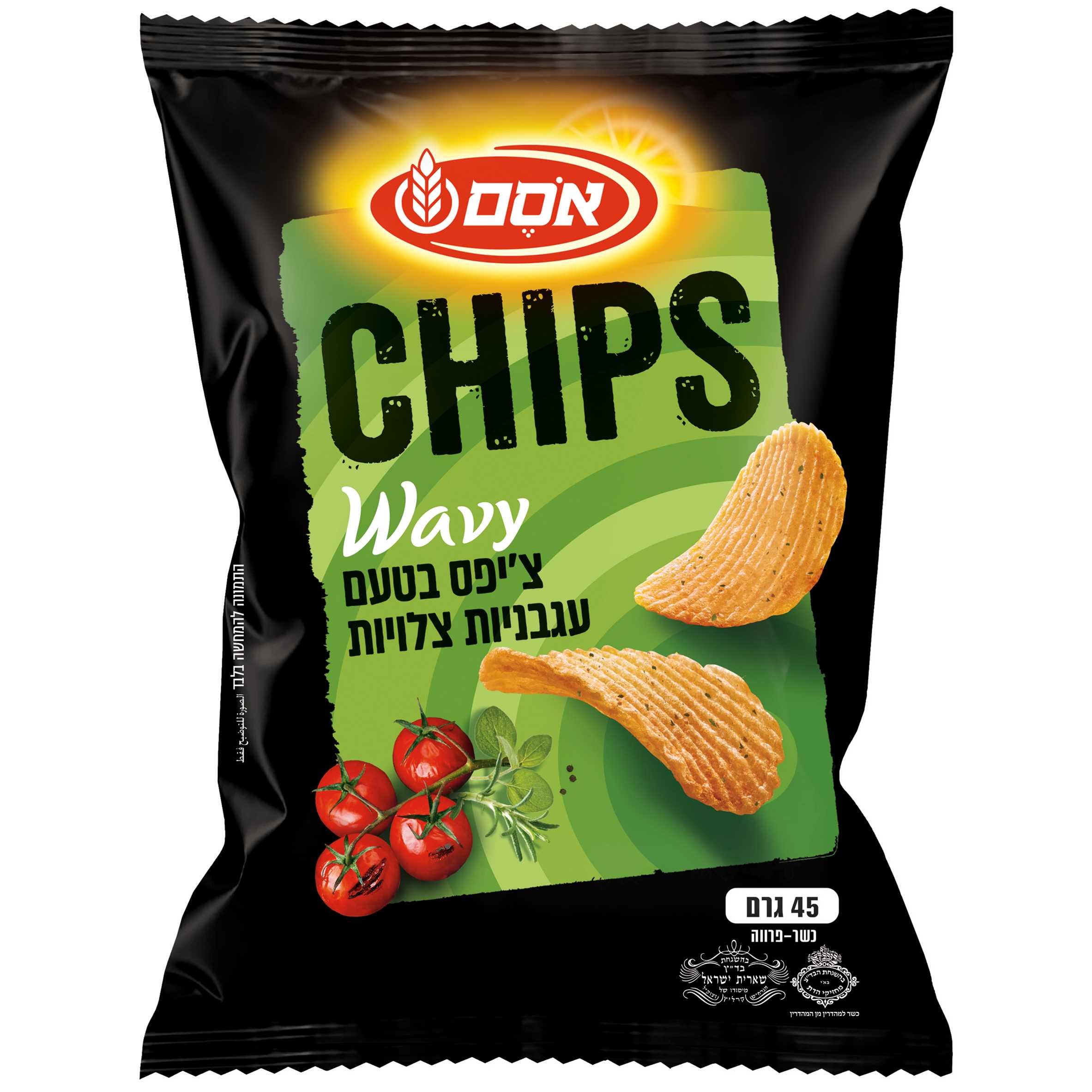 אסם ציפס גלי עגבניות צלויות 45גרם