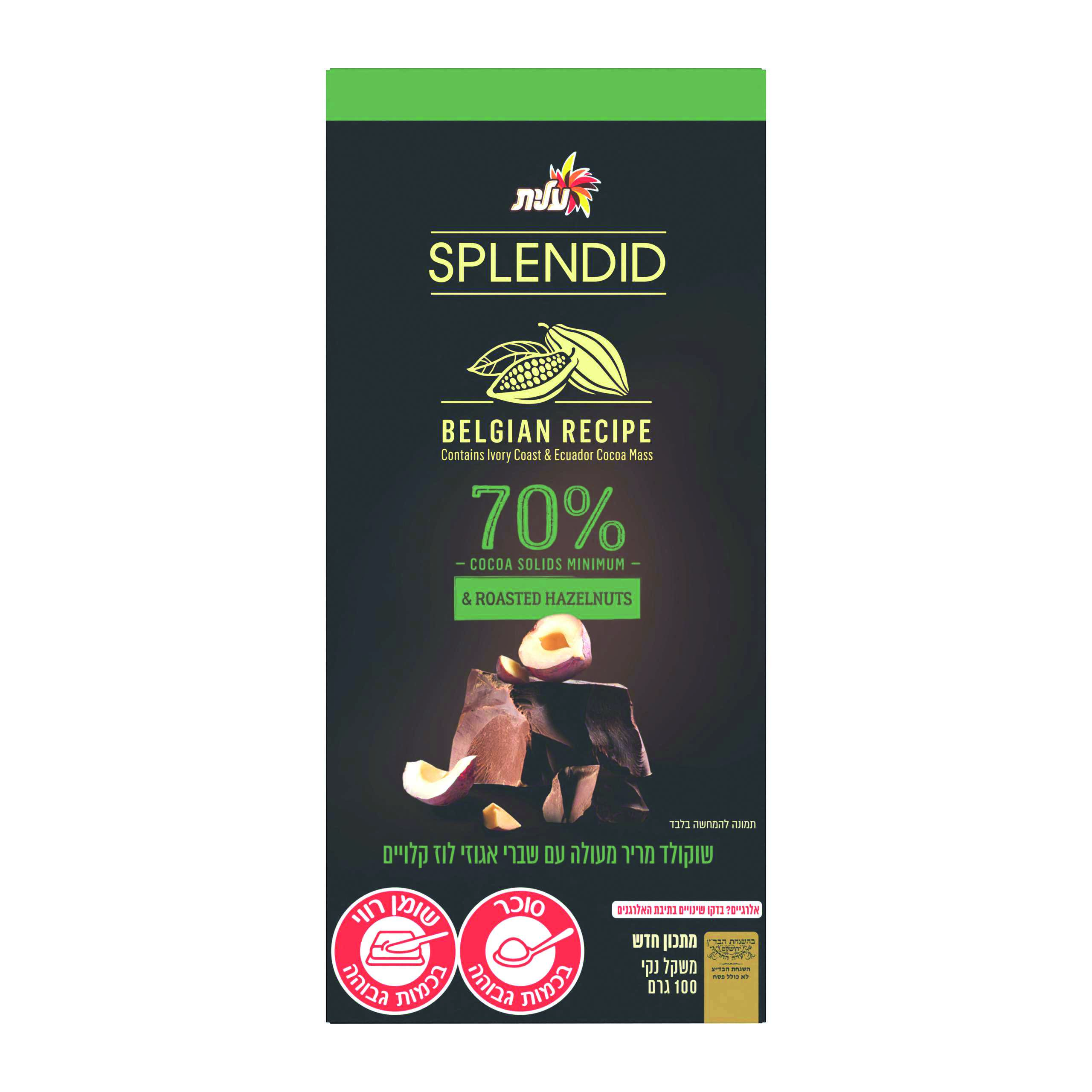 ספלנדיד 70% עם שברי אגוזי לוז קלויים