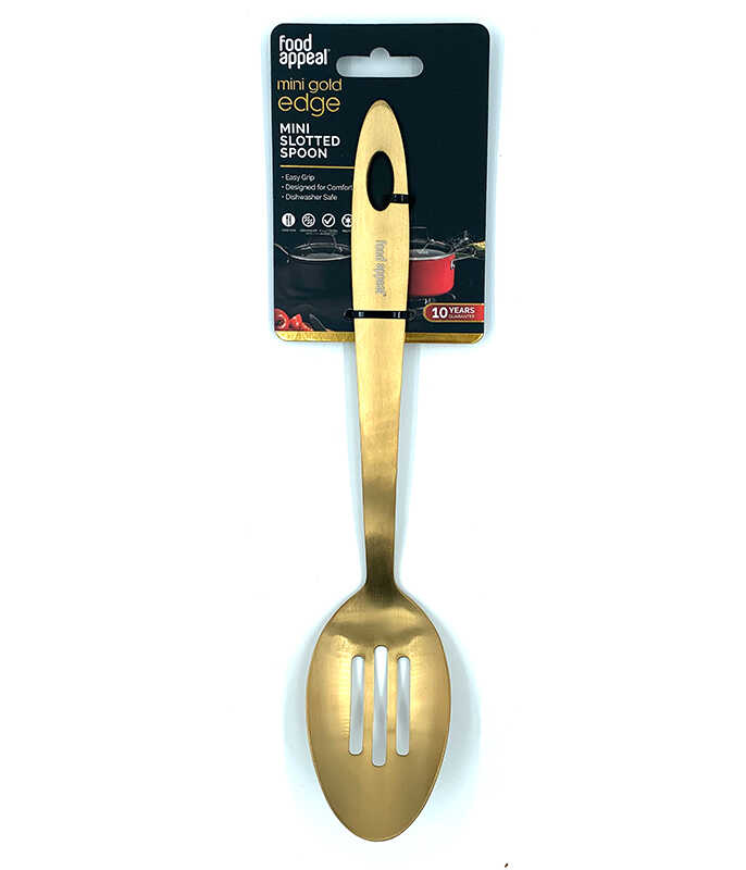 התרווד המחורץ אידיאלי להגשת מנות אישיות, ערבוב סלטים קטנים, או העברת מזון מכלי לכלי. הגימור הזהוב מוסיף מגע של יוקרה לכל ארוחה או אירוע.