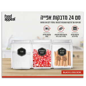 סט מדבקות אפייה לצנצנות שחור BLACK מבית FOOD APPEAL