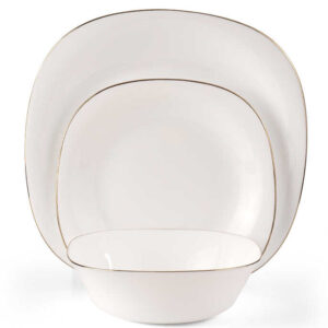 סט אוכל מרובע 18 חל' זכוכית לבן אנטי צ'יפ שוליים זהב GOLD MOON