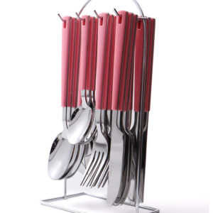 סט סכו"ם עם סטנד תלייה 24 חל' צבע ורוד